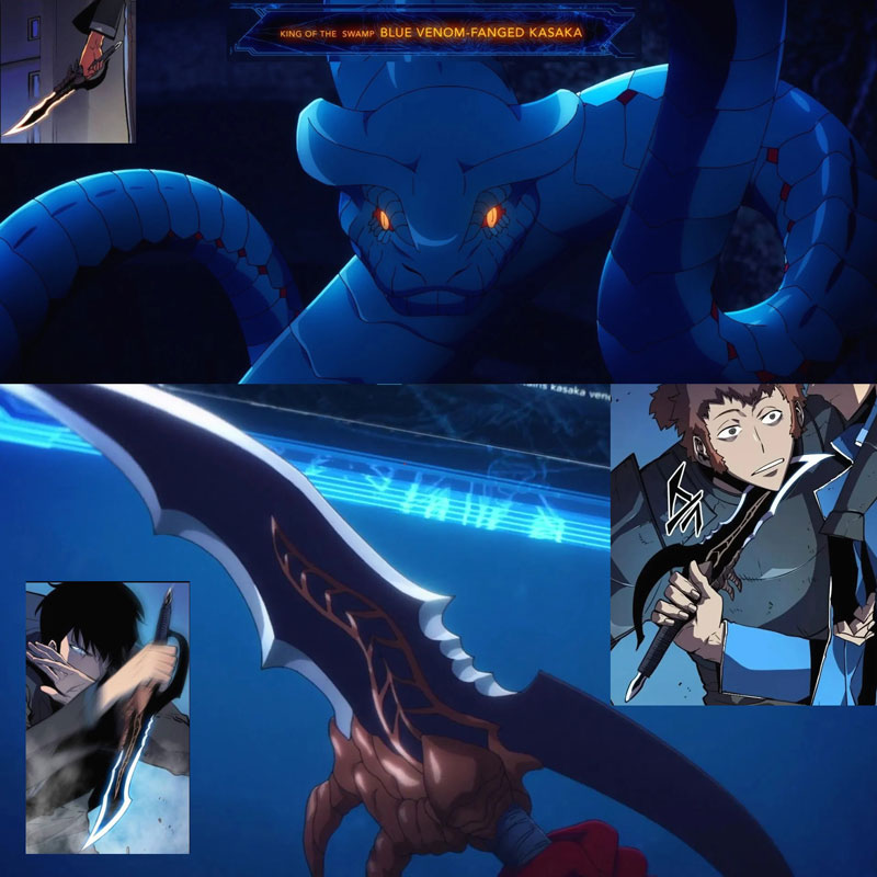 La daga Kasaka Venom Fang replica la prima arma ottenuta in combattimento da "Sung Jinwoo" sconfiggendo "il Re delle Paludi Kasaka",un gigantesco serpente velenoso blu, nelle sue battaglie di hunter protagonista del fumetto koreano "Solo Leveling",da cui è tratta anche l'omonima serie animata per la tv ed un videogame.