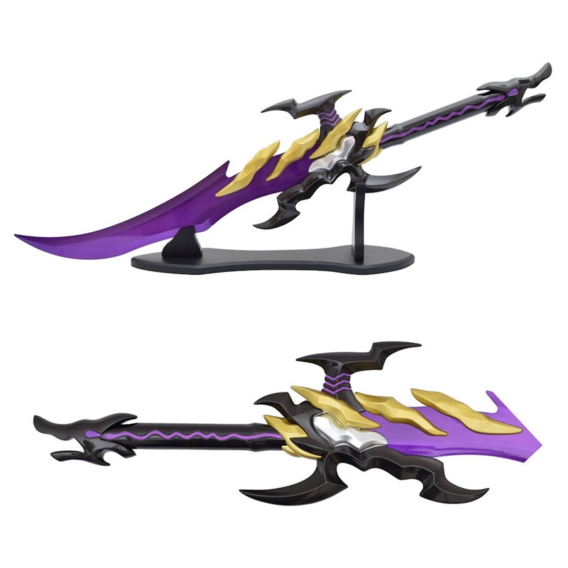 La Lama è in acciaio inox 440 smaltata viola dalla particolare forma ad artiglio,con la sezione superiore decorata da fulmini dorati come l'originale.