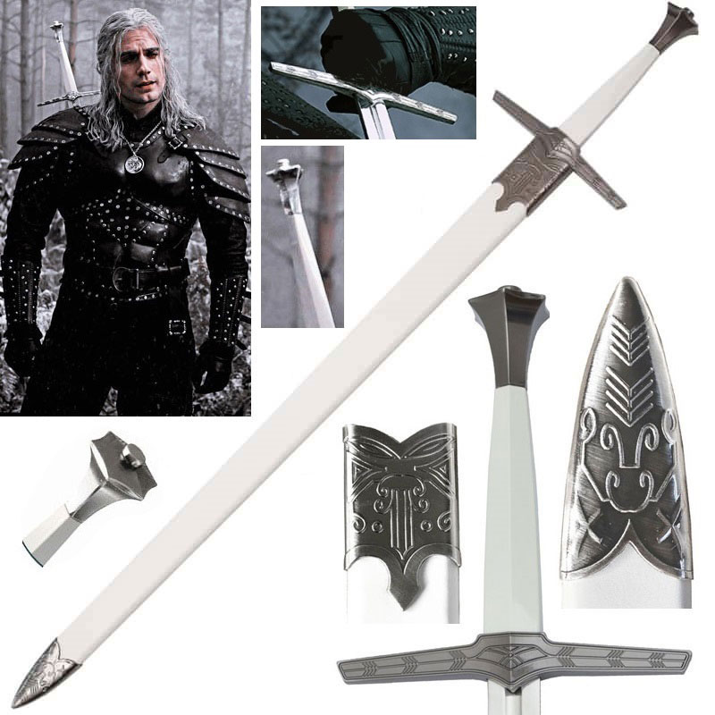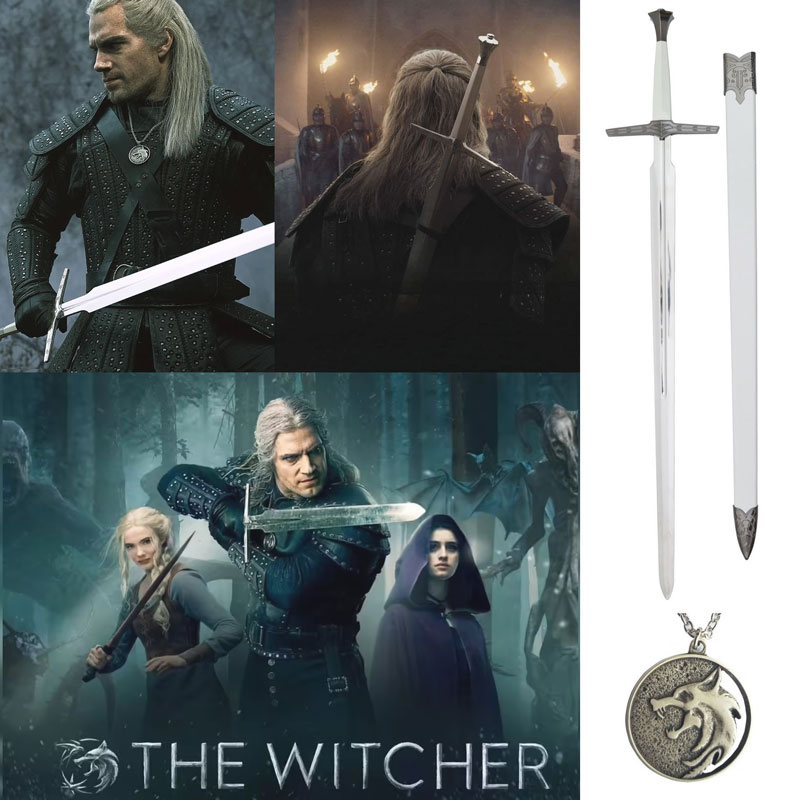 Spada d'Argento di Geralt di Rivia versione serie TV con ciondolo per cosplay - spada fantasy ornamentale da collezione con fodero dello Strigo Gwynbleidd della serie televisiva The Witcher