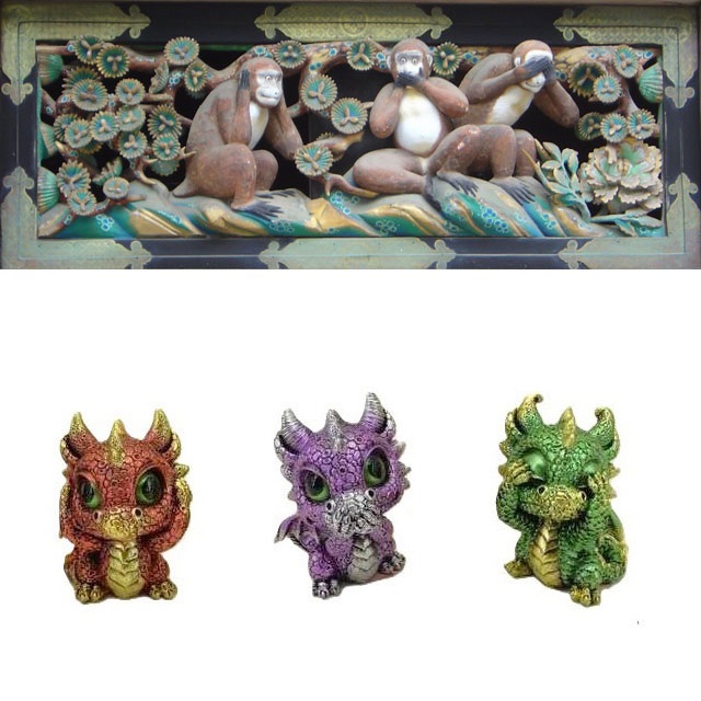 Infatti queste 3 Scimmiette conosciute a livello mondiale per la scultura in legno del XVII secolo nel santuario Tōshōgū a Nikkō in Giappone,