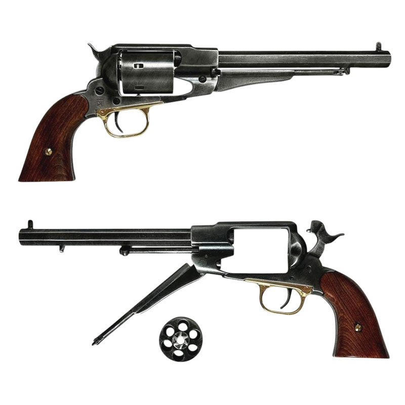 Il Revolver replica una Remington con canna ottagonale calibro 45 a 6 colpi,con tamburo mobile a retrocarica(cioè i colpi andavano inseriti nella parte posteriore del tamburo),con funzionamento a singola azione(cioè si deve alzare il cane per fare fuoco), e cane con 2 posizioni di fermo: