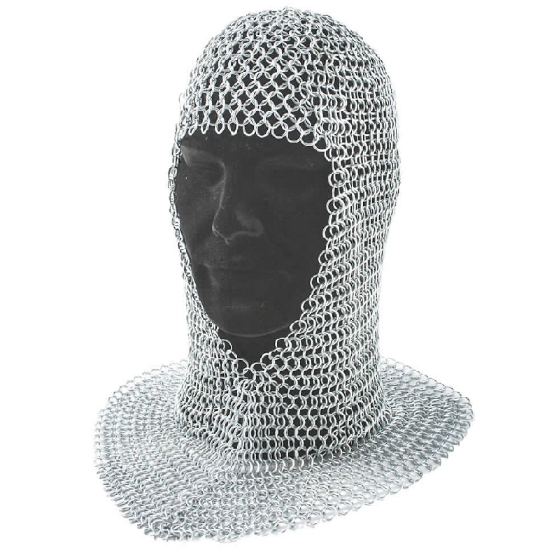 Usbergo con Camaglio da Cavaliere indossabile - set protettivo di Cotta di ferro con cappuccio e maglia di anelli metallici da guerriero